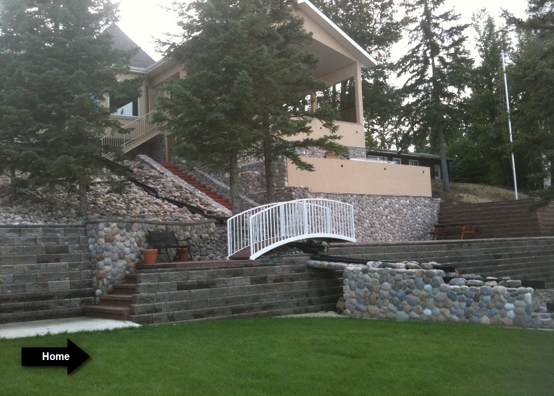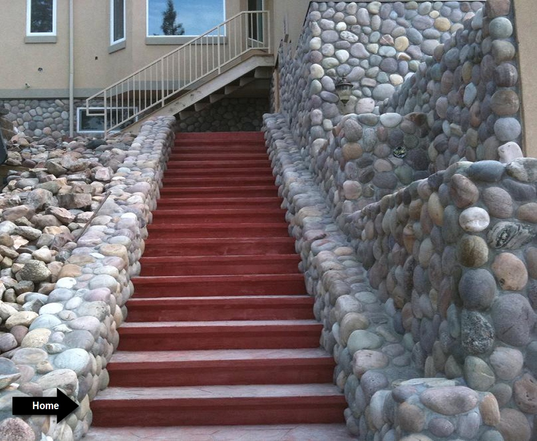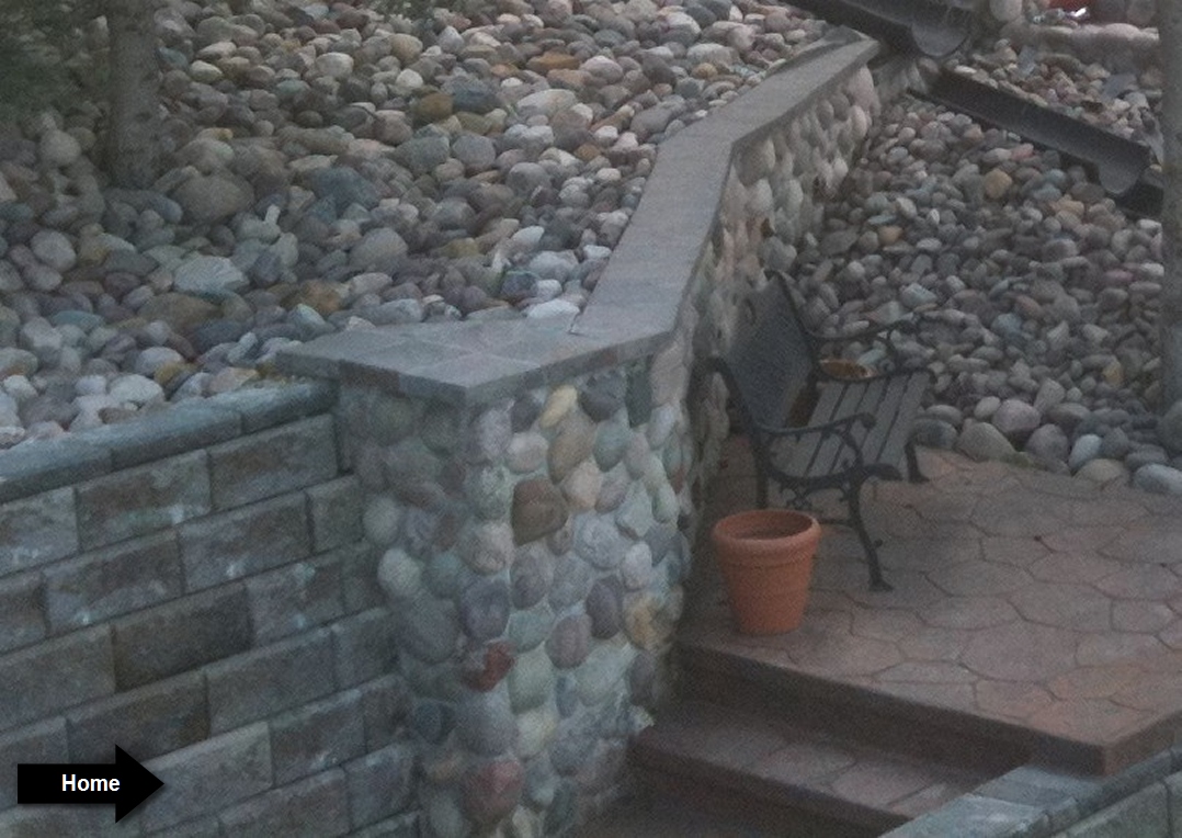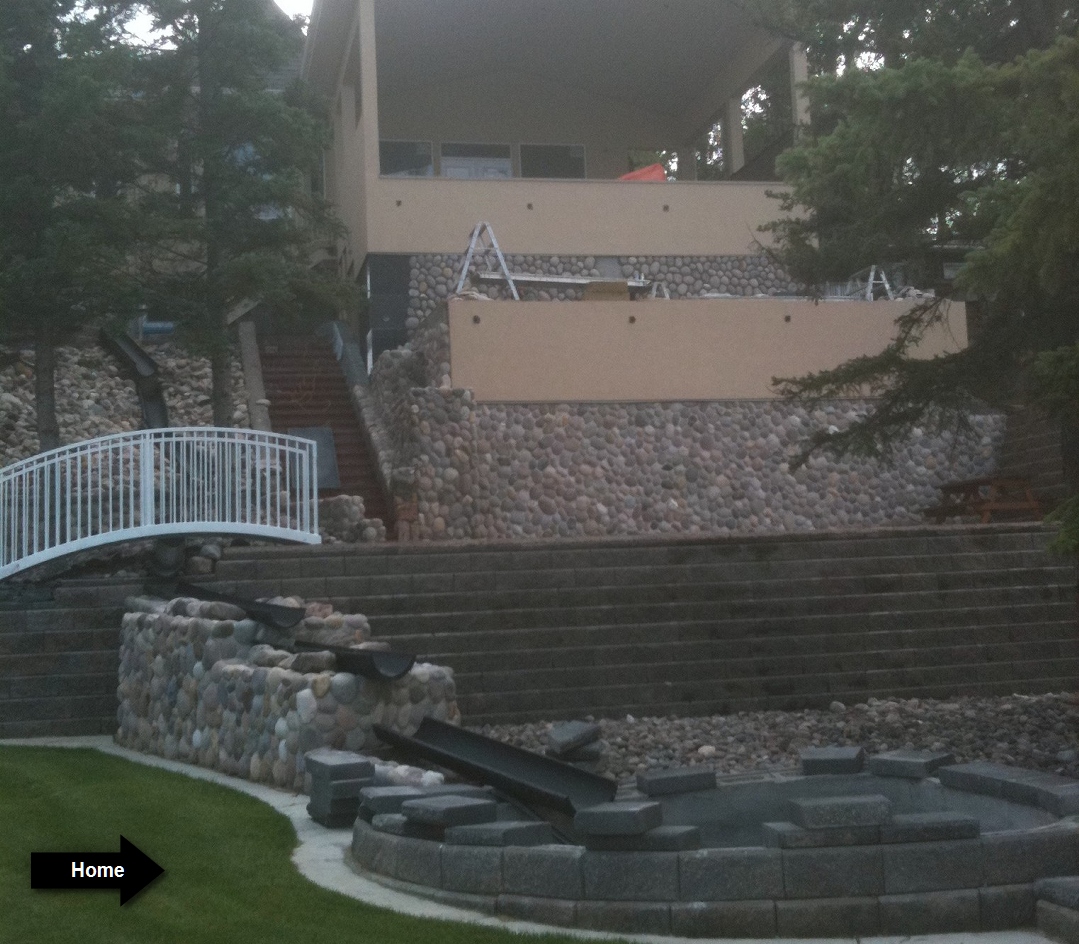 This project features an exterior stone veneer feature wall, stair case and retaining wall.